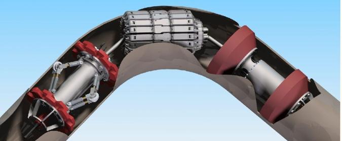 管道漏磁檢測(cè)器的檢測(cè)原理是:其磁柱通過(guò)鋼刷與管道內(nèi)壁接觸,并在管道壁的圓周方向上形成縱向磁場(chǎng)。漏磁檢測(cè)器在管道中運(yùn)行。當(dāng)管線完好無(wú)損時(shí),磁力線在管壁上的分布均勻穩(wěn)定。當(dāng)管道的內(nèi)壁和外壁存在缺陷時(shí),缺陷部位的磁力線會(huì)穿透管壁,并且磁力線會(huì)漏出,導(dǎo)致磁場(chǎng)發(fā)生變化。位于N較和S較之間的檢測(cè)探頭可檢測(cè)變化的磁場(chǎng)信號(hào)。對(duì)模擬和數(shù)字信號(hào)進(jìn)行放大和轉(zhuǎn)換后,將檢測(cè)數(shù)據(jù)存儲(chǔ)在SMC盒中,然后使用計(jì)算機(jī)專(zhuān)用分析軟件對(duì)數(shù)據(jù)進(jìn)行分析,以了解所有檢測(cè)管道的管壁缺陷。